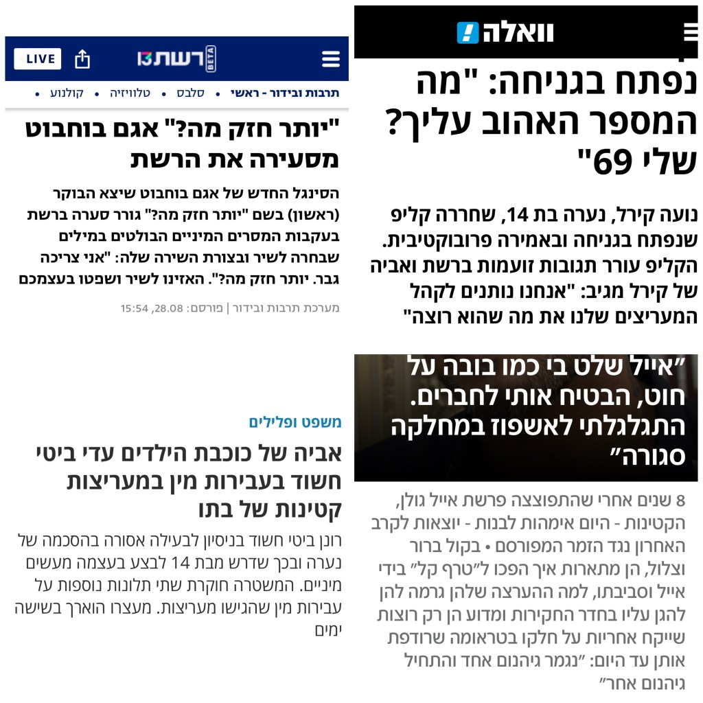 מלבד הצד המכוער של התעשייה שלמעשה מנסה כמו סוכן מכירות אגרסיבי לדחוף לנו פנטזיה של שקר החן והבל היופי ישנו גם צד אפל ומכוער אף יותר והוא הניצול הפיזי של מעריצות הרוצות לגעת בתהילה ולו לשנייה אחת. רונן ביטי, אביה של הזמרת עדי ביטי שניצל את הקרבה לבתו, כדי לפגוע בנערות המעריצות אותה. אייל גולן ופרשת הפותמוביל שאין לי שום כוונה להכנס אליה מלבד תחושת הגועל שיש עדין אנשים שתומכים בו. בכתבת טלוויזיה שנערכה לאחר התפוצצות הפרשה, עמד אחד הכתבים מחוץ להופעה של אייל ושאל אמא שהייתה עם בתה המתבגרת מה היה קורה לו הבת שלה הייתה רוצה להיות עכשיו עם אייל גולן והאמא השיבה: ״אני אשמח בשבילה…״: